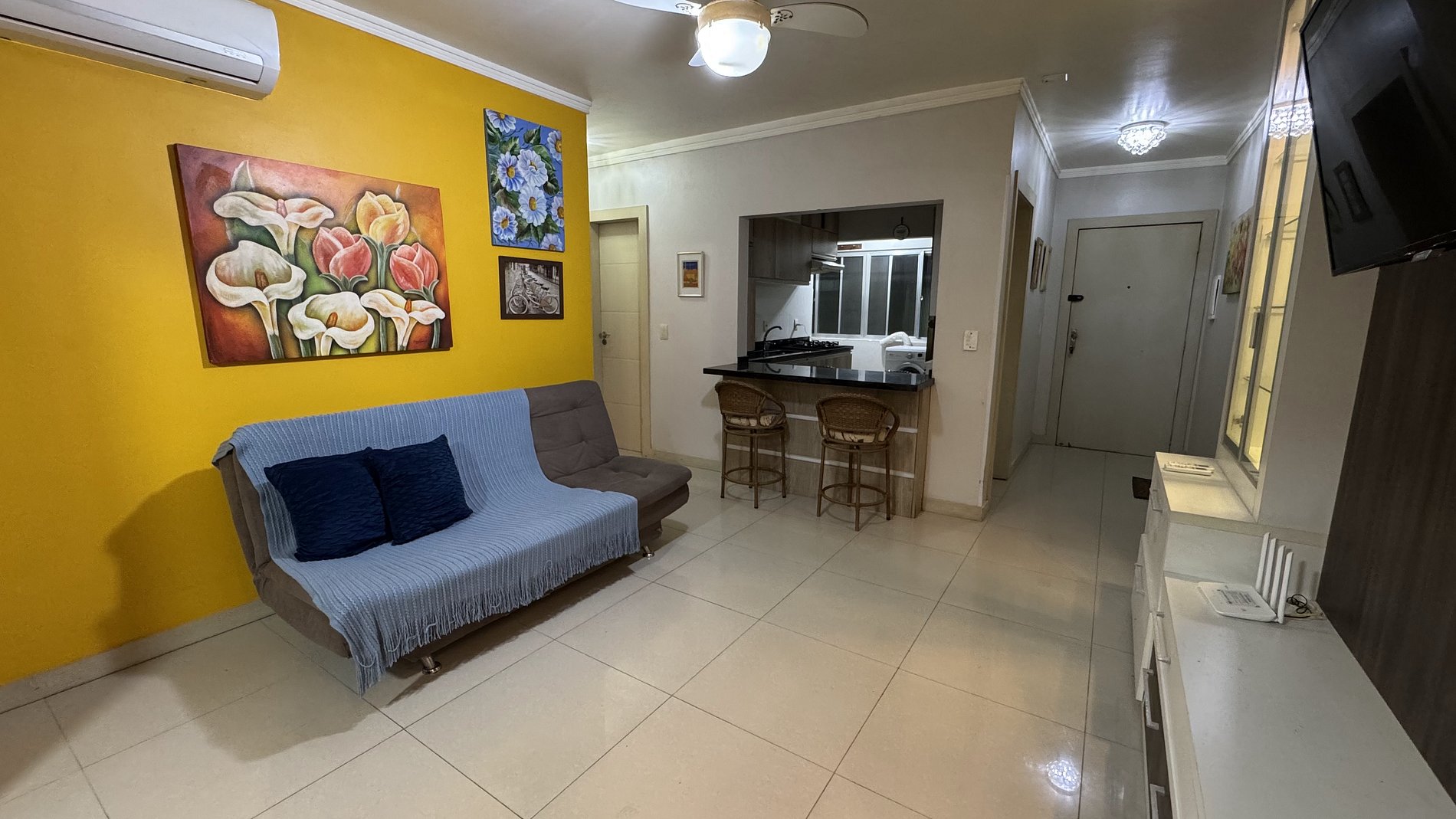 Sala de estar com ar-condicionado, 1 sofá-cama + 2 colchões de solteiro extras