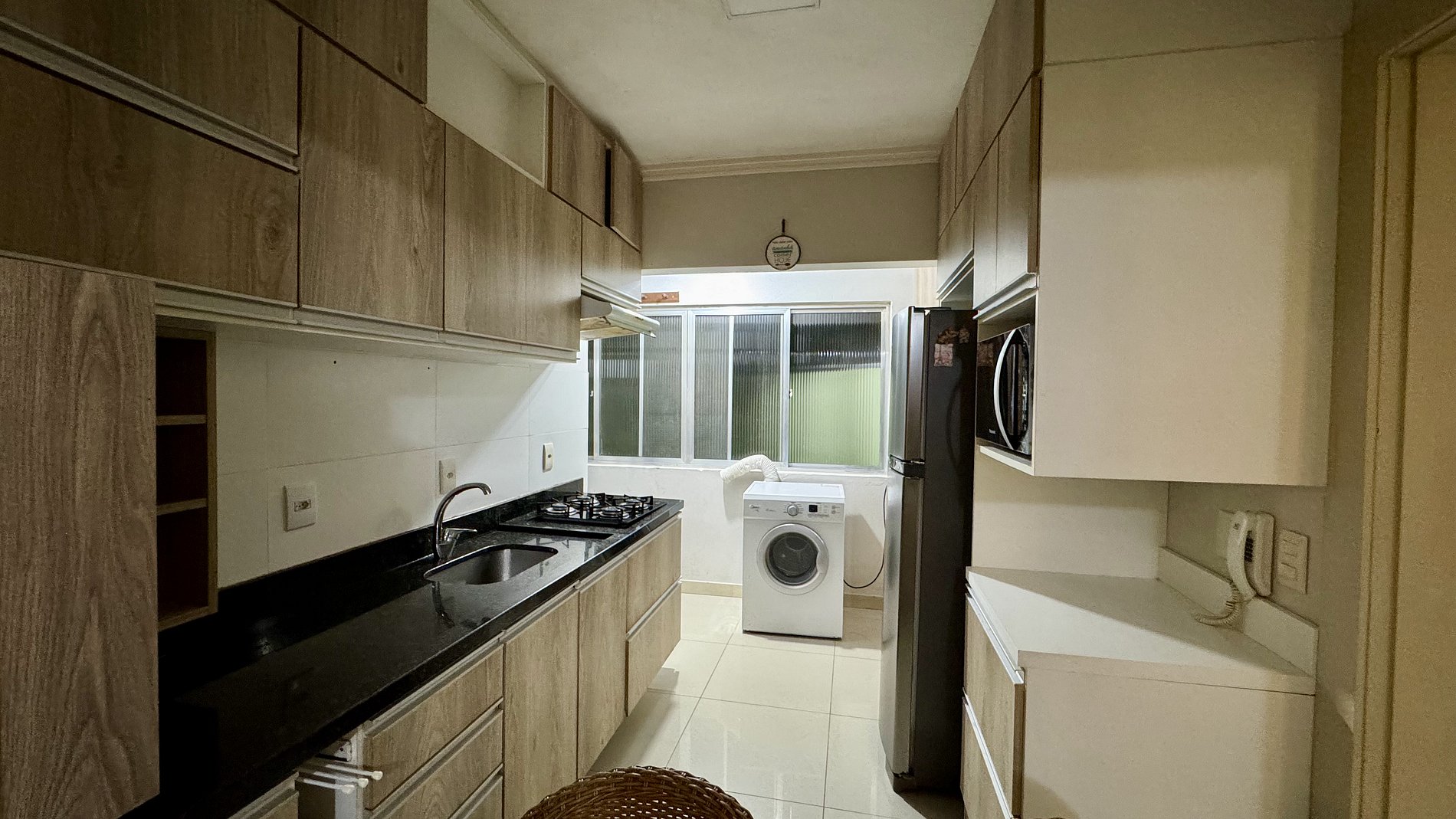 Os hóspedes têm acesso a todas as áreas privativas do apartamento, incluindo dormitório, sala, banheiro, área de serviço, área externa e churrasqueira.