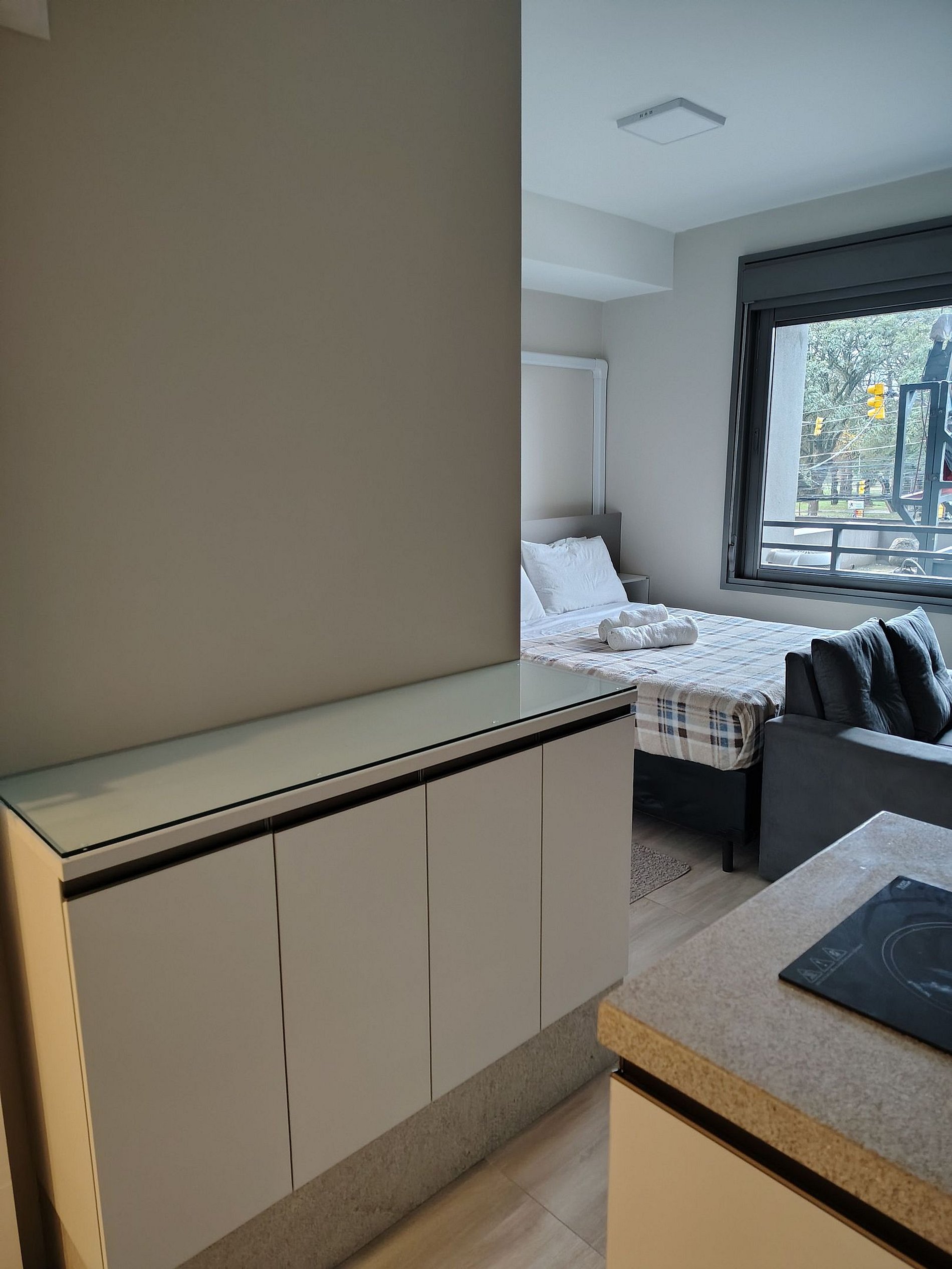 - Studio completo: O espaço é 100% privativo, incluindo quarto, cozinha e banheiro.