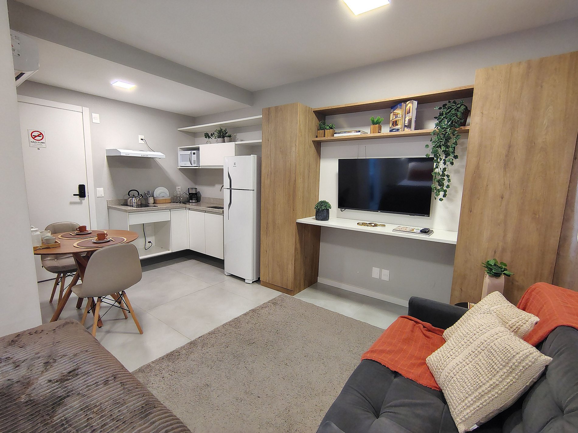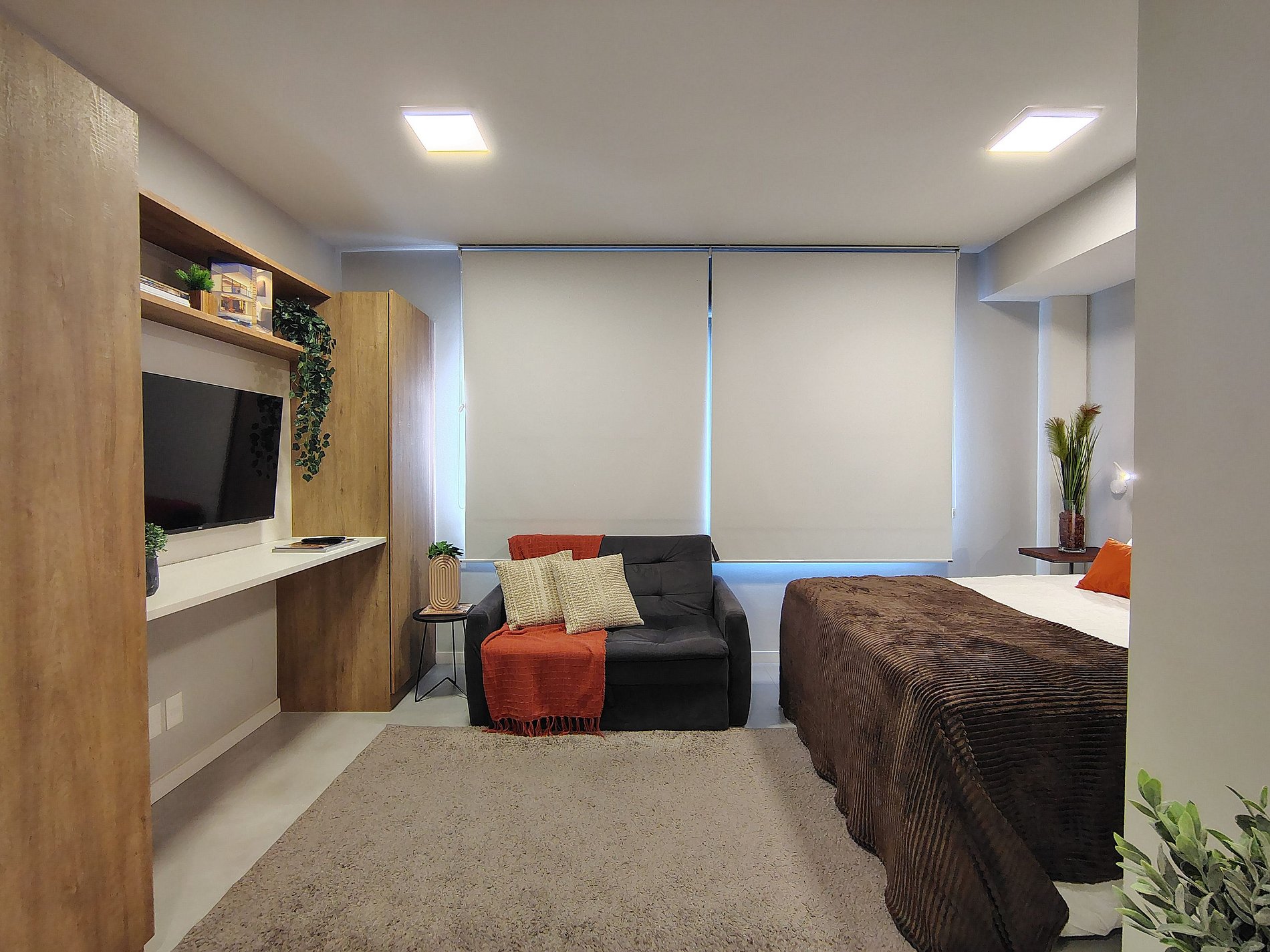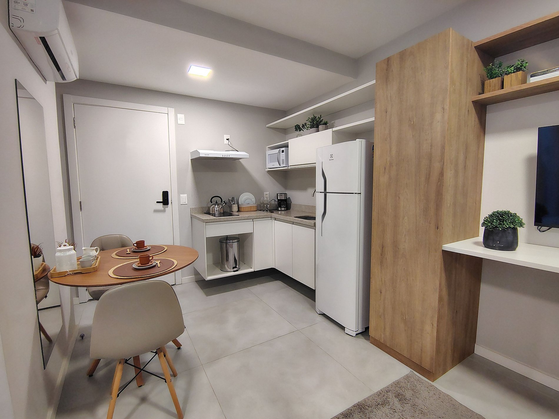 - Studio completo: O espaço é 100% privativo, incluindo quarto, cozinha e banheiro.