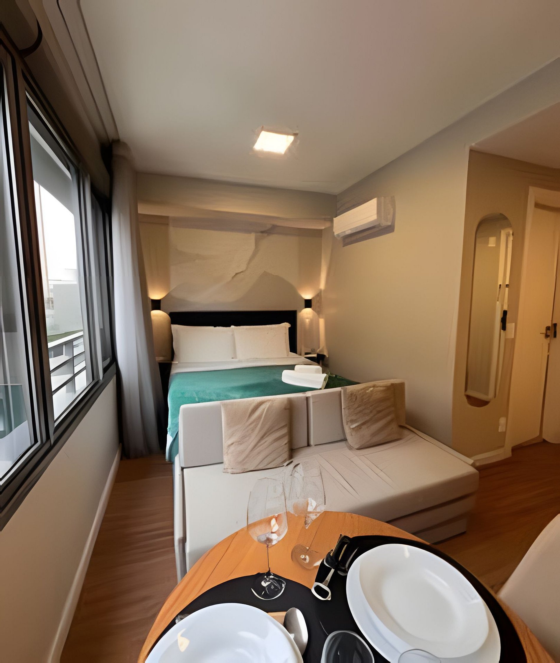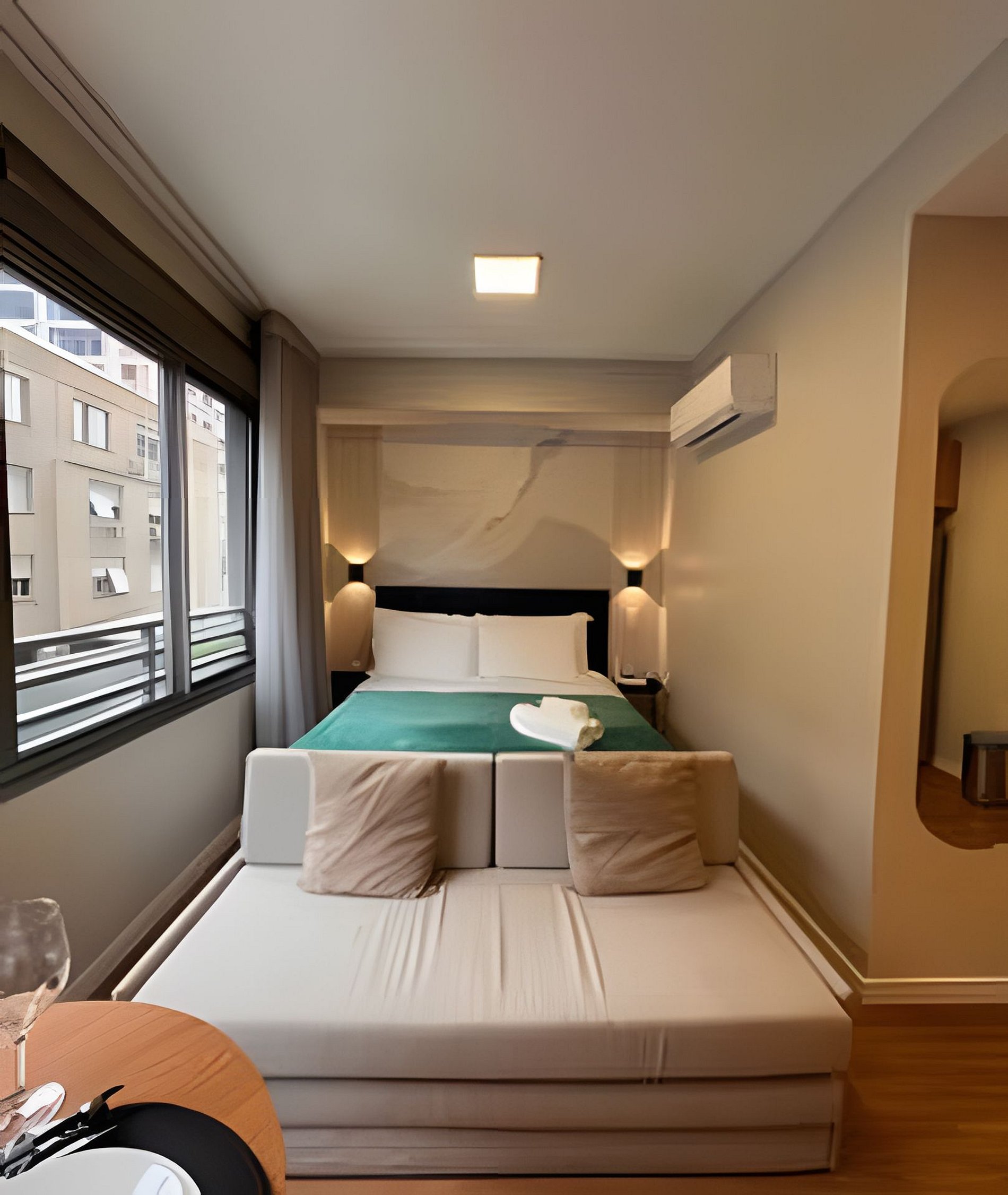 Os apartamentos foram preparados para receber confortavelmente duas pessoas em cama de casal. Caso os hóspedes prefiram dormir separadamente, é possível solicitar a preparação do sofá-cama (ou cama auxiliar). Esse serviço deve ser solicitado antecipadamente e pode envolver custo adicional, sujeito a confirmação antes da reserva.O hóspede terá acesso total ao apartamento e poderá utilizar todas as áreas comuns do prédio livremente.
