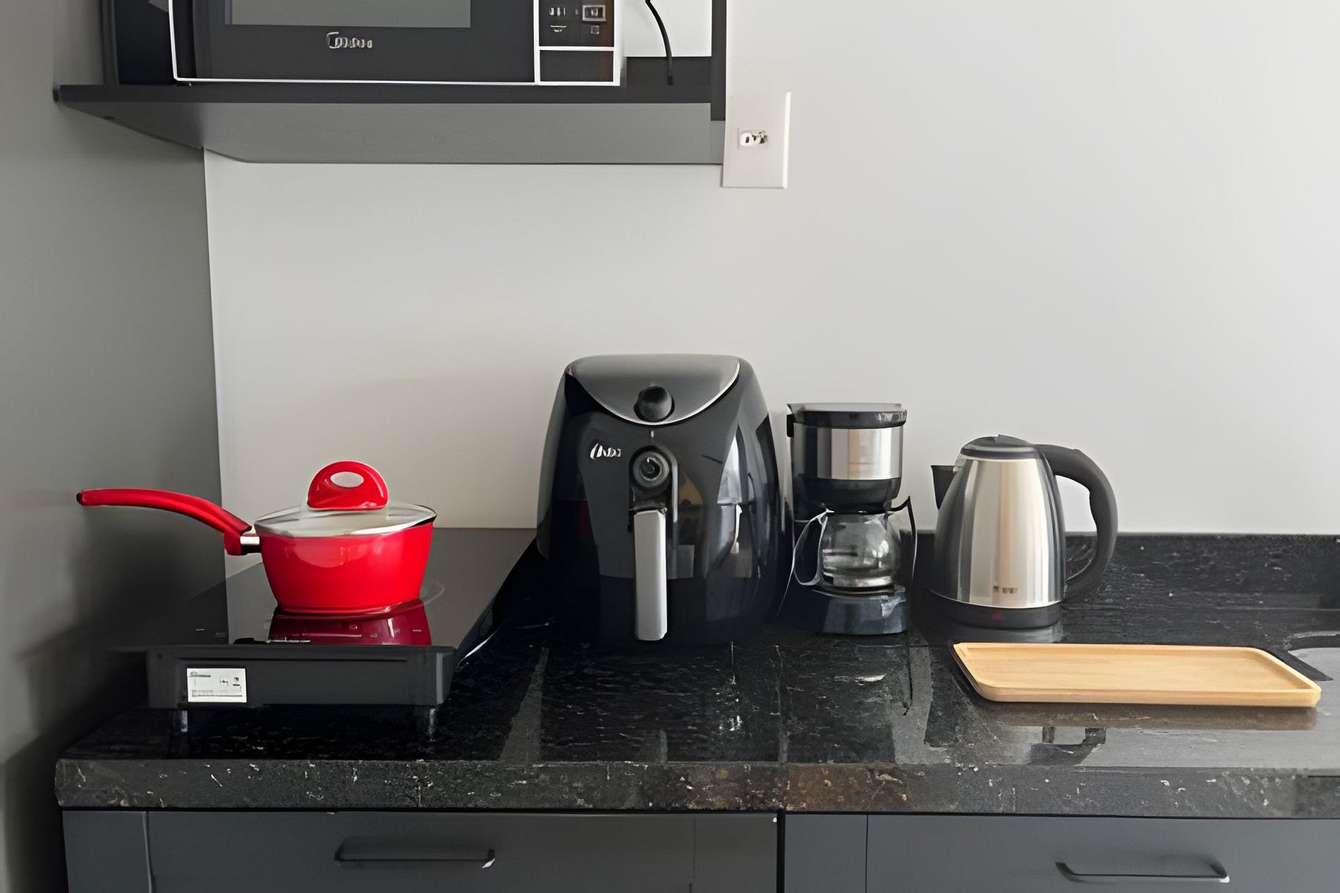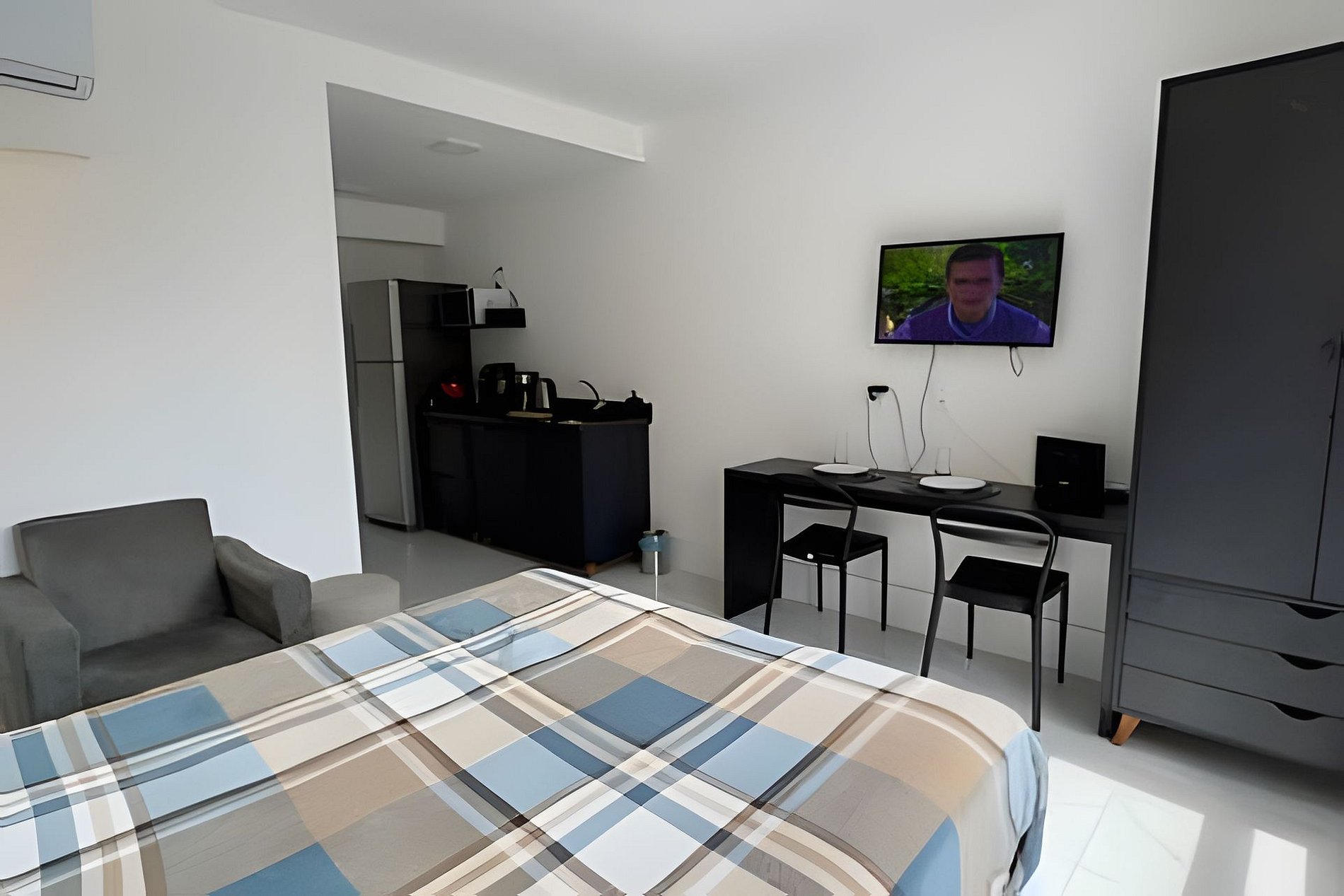 Hospede-se com conforto e praticidade em um studio moderno, totalmente equipado para sua
