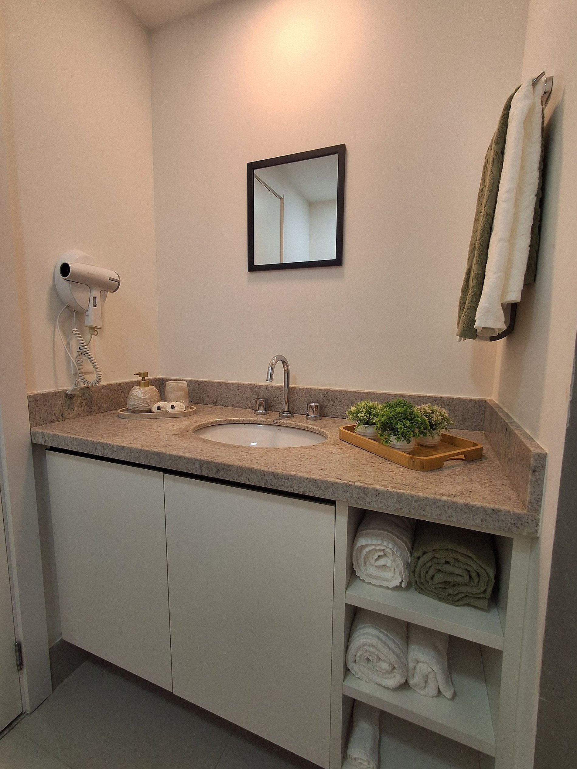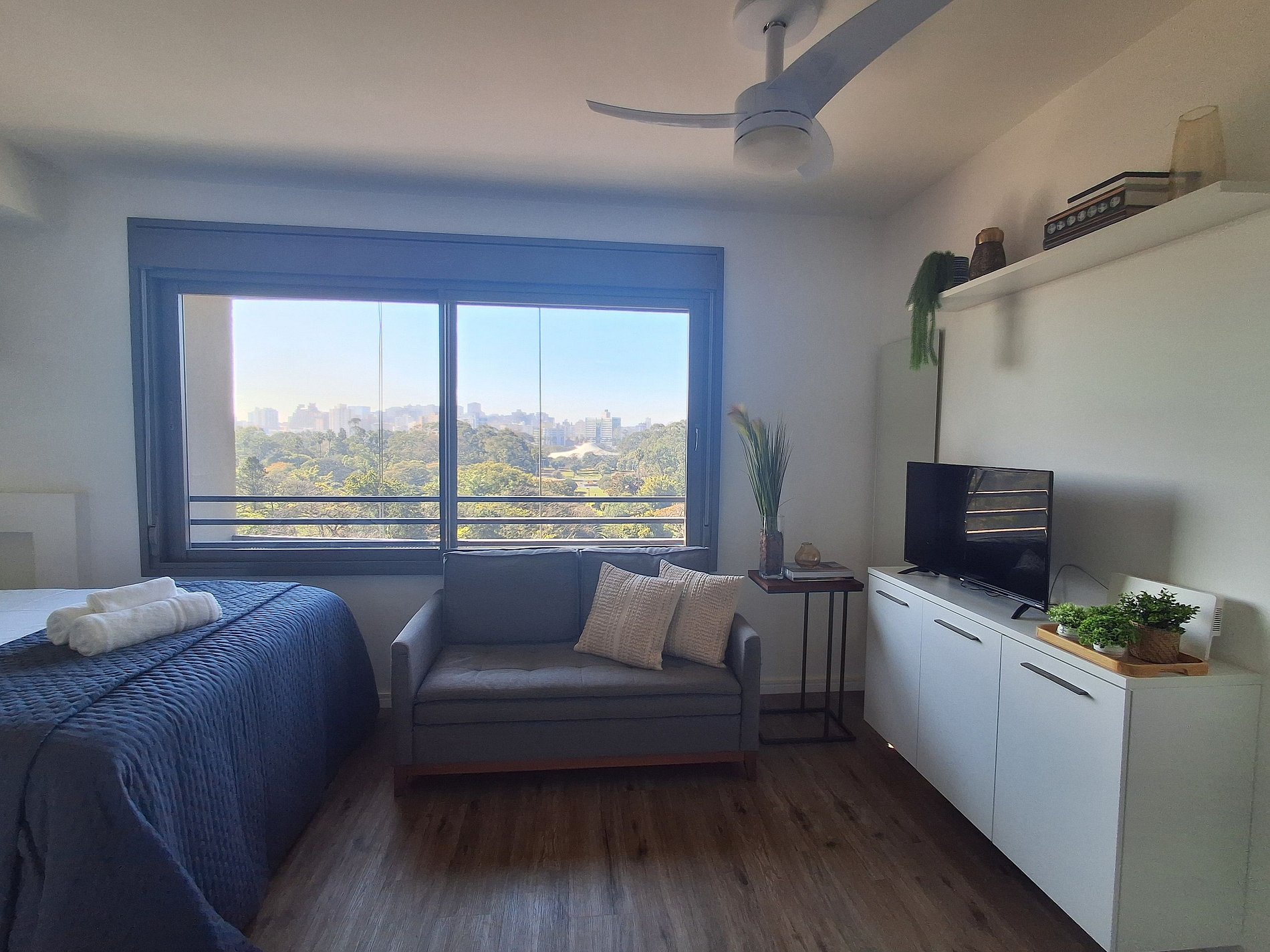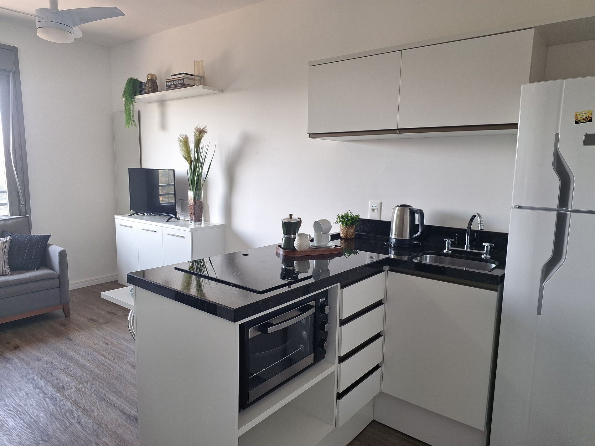 - Studio completo: O espaço é 100% privativo, incluindo quarto, cozinha e banheiro.