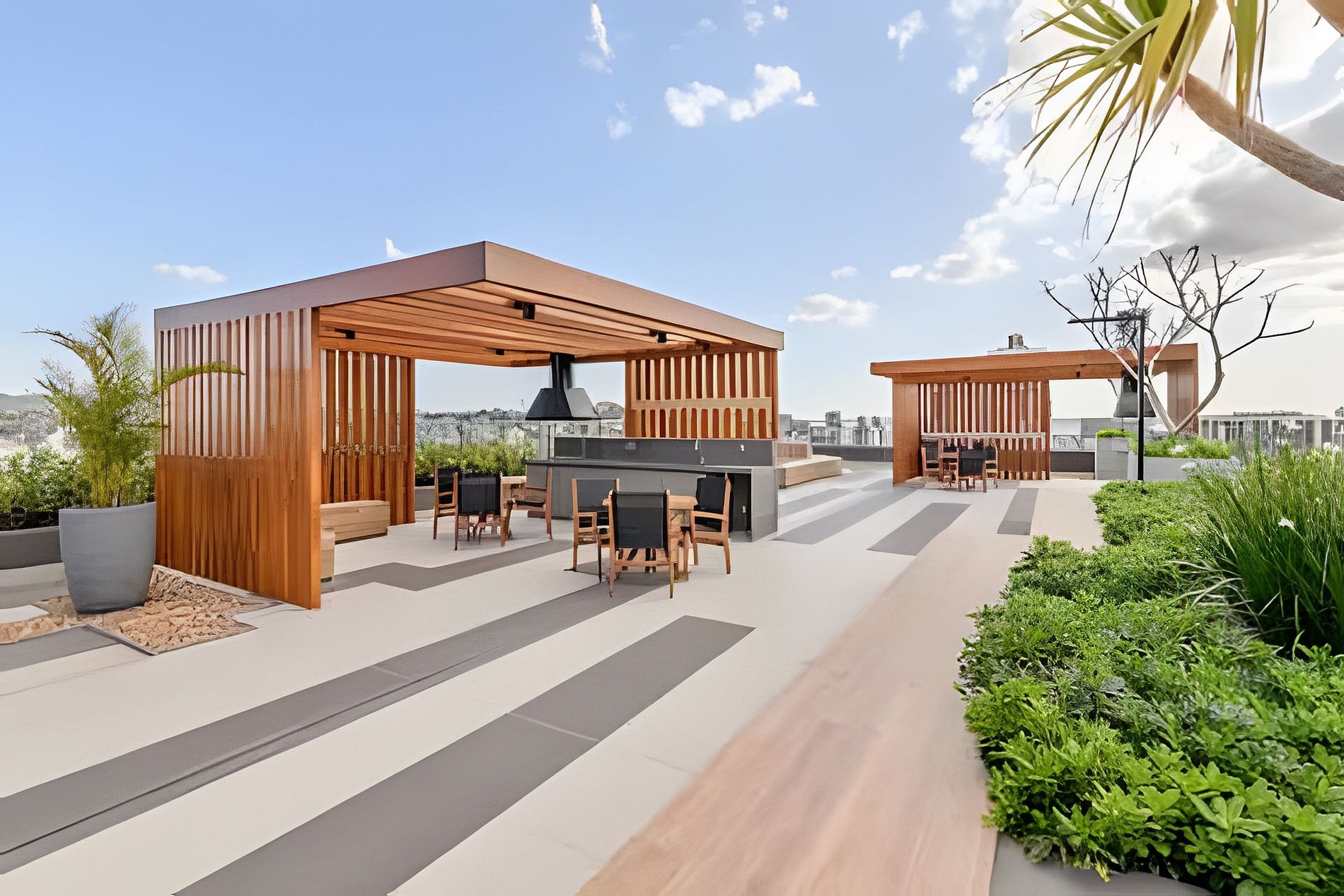 - Terraço do prédio, área da piscina.