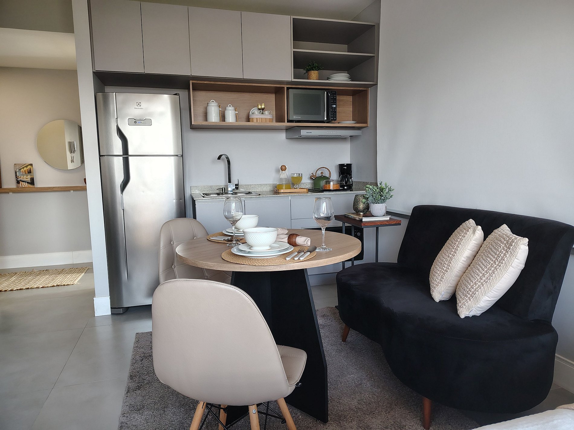 - Studio completo: O espaço é 100% privativo, incluindo quarto, cozinha e banheiro.